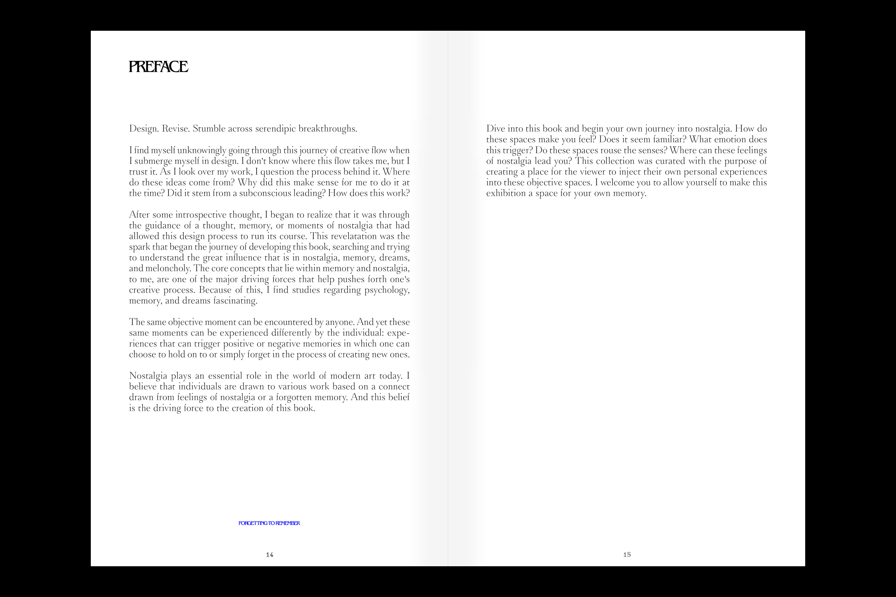 This book is themed around 6 photographers who I thought best-captured memories in one’s life. This theme plays off on how certain imagery would inspire or allow you to have a space to put your memories and nostalgia in.